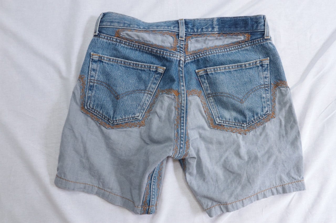 ウエストのボタンがD&Gであることから、ドルガバのデニムを解体再構築したものと思われます。