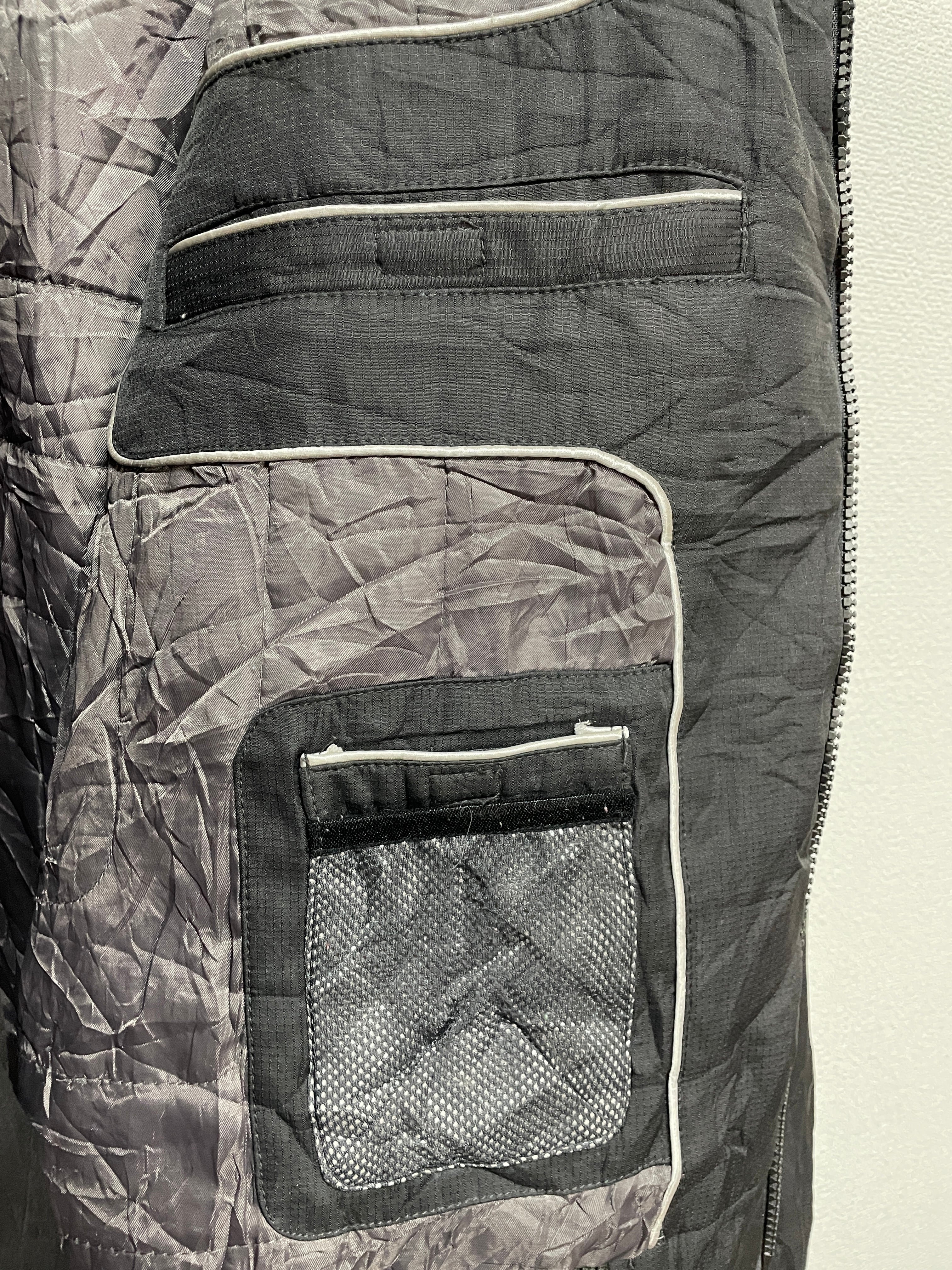 ギミックの効いたポケットにXXLという振り切ったサイズ感、コンクリートカラー。裏地の仕様とヘッドホンマーク。